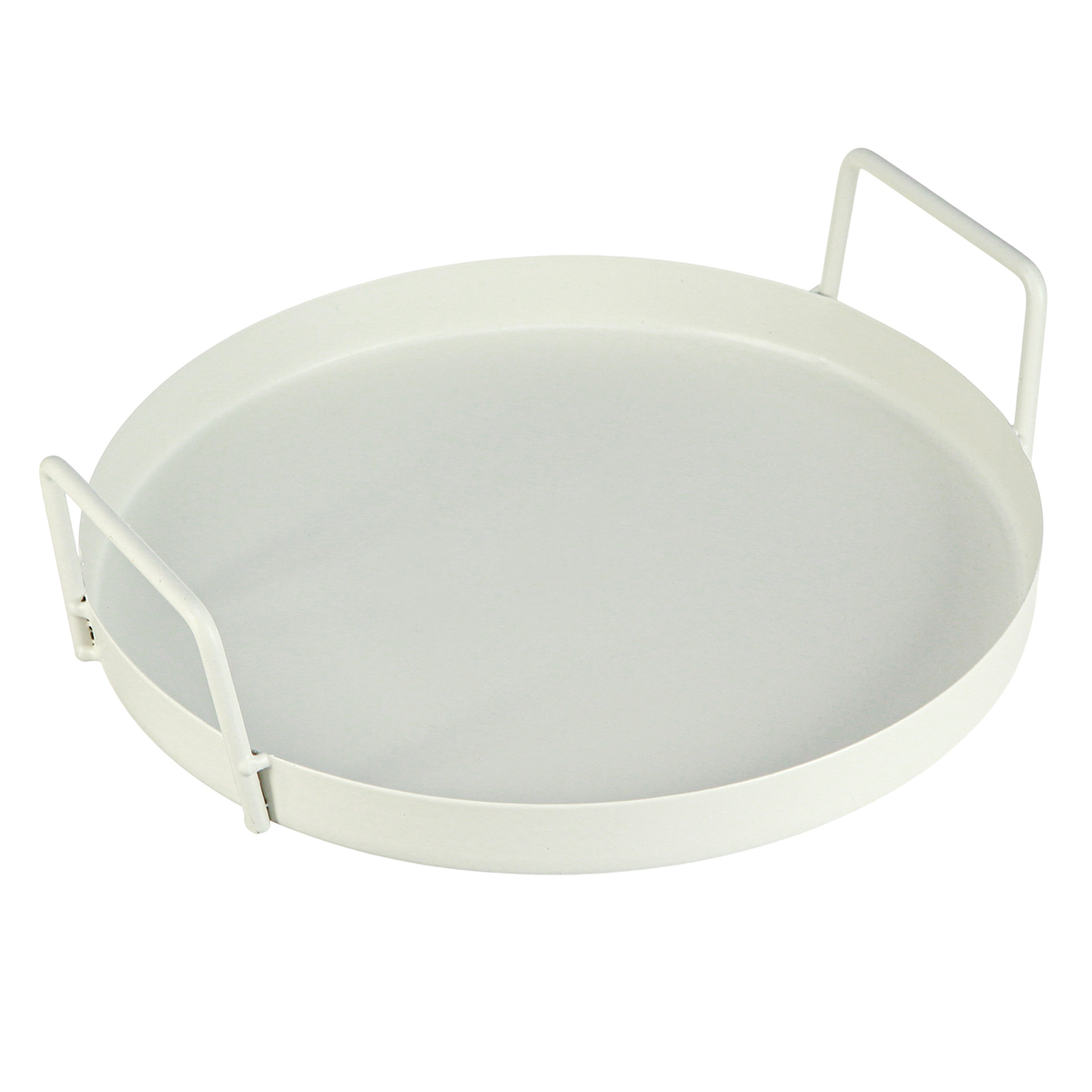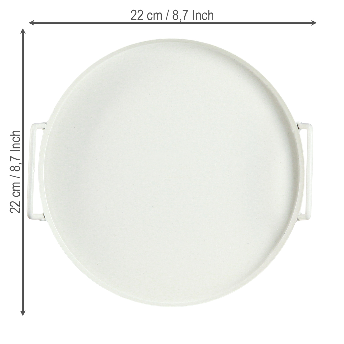 Con un diametro di 22 cm e un'altezza discreta di 3 cm, questo vassoio rotondo bianco è la soluzione ideale per molteplici utilizzi. Realizzato in robusto metallo, il vassoio da portata convince non solo per la sua durevolezza, ma anche per la sua versatilità. I pratici manici consentono di trasportare facilmente e in sicurezza bevande, snack o persino composizioni per la colazione direttamente sul divano, o in giardino per una festa estiva!