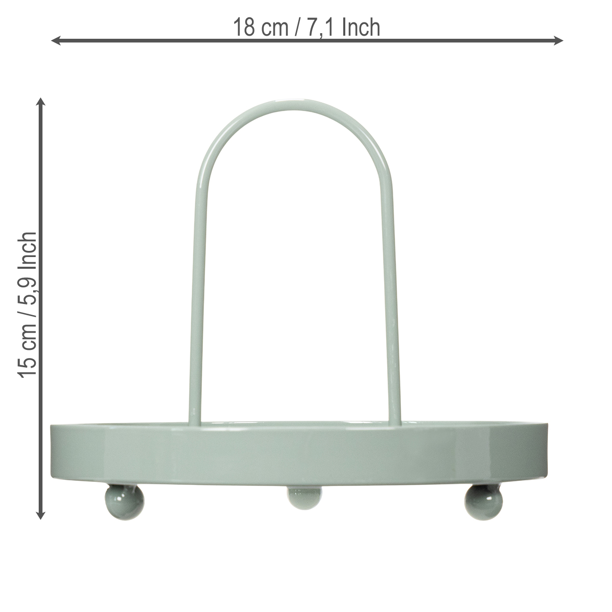 Anche voi avete piccoli oggetti in cucina o sul tavolo da pranzo che sembrano non trovare mai una sistemazione definitiva? Allora abbiamo l'accessorio perfetto per voi! Questo vassoio decorativo con manico alto e design rotondo unisce funzionalità e un tocco di stile. Con la sua elegante finitura verde lucido, si abbina perfettamente sia agli stili di arredamento moderni che a quelli classici. Vi invita a dare libero sfogo alla vostra creatività, che si tratti di servire deliziosi snack, esporre ordinatamente spezie e salse o semplicemente mettere in mostra i vostri oggetti decorativi preferiti. Vasi per erbe aromatiche perfettamente disposti? Un armonioso gioco di luci con le candele? Decorare con i vassoi non è solo divertente, ma crea anche un'atmosfera piacevole e invitante. Questo vassoio in metallo, con i suoi tenui toni pastello, si armonizza meravigliosamente con gli interni contemporanei e minimalisti. Un vero e proprio elemento di spicco per la cucina, il tavolo da pranzo o persino il davanzale.