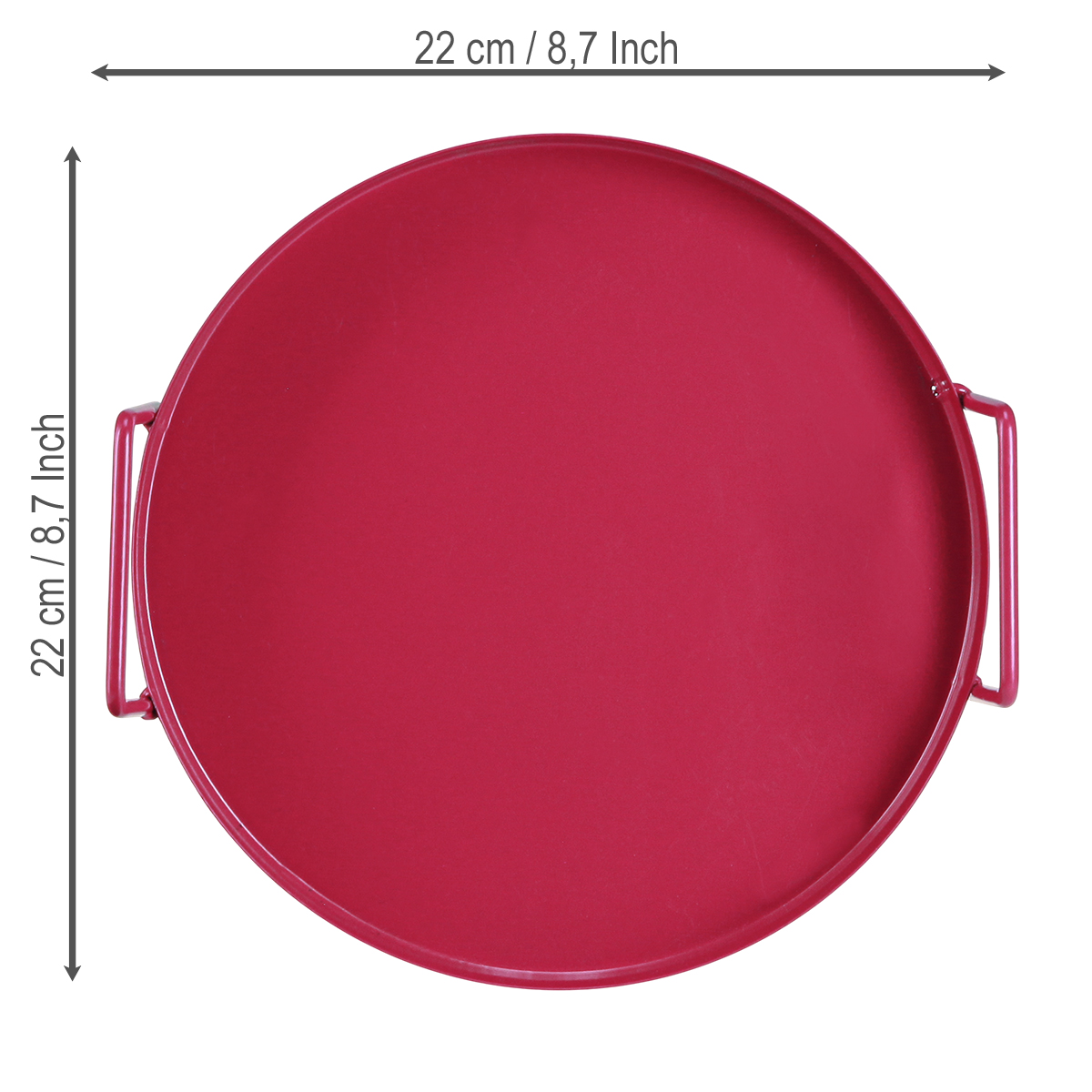Questo vassoio rotondo in metallo rosso acceso, con un diametro di 22 cm, non è solo un vero e proprio colpo d'occhio, ma anche eccezionalmente funzionale. I manici opachi garantiscono una presa sicura e rendono il vassoio pratico e maneggevole. Che vogliate servire con stile bevande e snack ai vostri ospiti o mettere in mostra le vostre piante preferite, questo vassoio rosso fa sempre un figurone. La robusta superficie in metallo è facile da pulire e vanta una durata impressionante: semplicemente un compagno affidabile in ogni situazione.